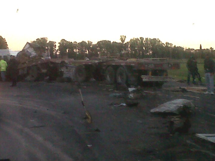 En horas de la tarde, alrededor de las 13:30 Hs, se produjo un accidente trágico en el km 117 de la ruta nacional N° 3, precisamente antes de llegar a la balanza de camiones, 2 camiones colisionaron de frente fuertemente, uno de ellos quedó destrozado en medio de la ruta, por tal motivo se cortó el paso de tránsito por más de 5 horas hasta que se despejara la zona. Desde el destacamento de Bomberos de Monte y comunal nos confirmaron en exclusiva que un ciudadano de la ciudad de Azul falleció por el fuerte impacto alrededor de las 17 hs en el hospital de Monte, la víctima fue identificada como FEDERICO ARANZA de 34 años, conducía uno de los camiones (Mercedes Benz), en tanto el otro conductor resultó con heridas y fue trasladado al nososcomio local, identificado como Sergio Fabian Gutiérrez oriundo de la ciudad de Azul. No hubo ciudadanos florenses involucrados en el siniestro.