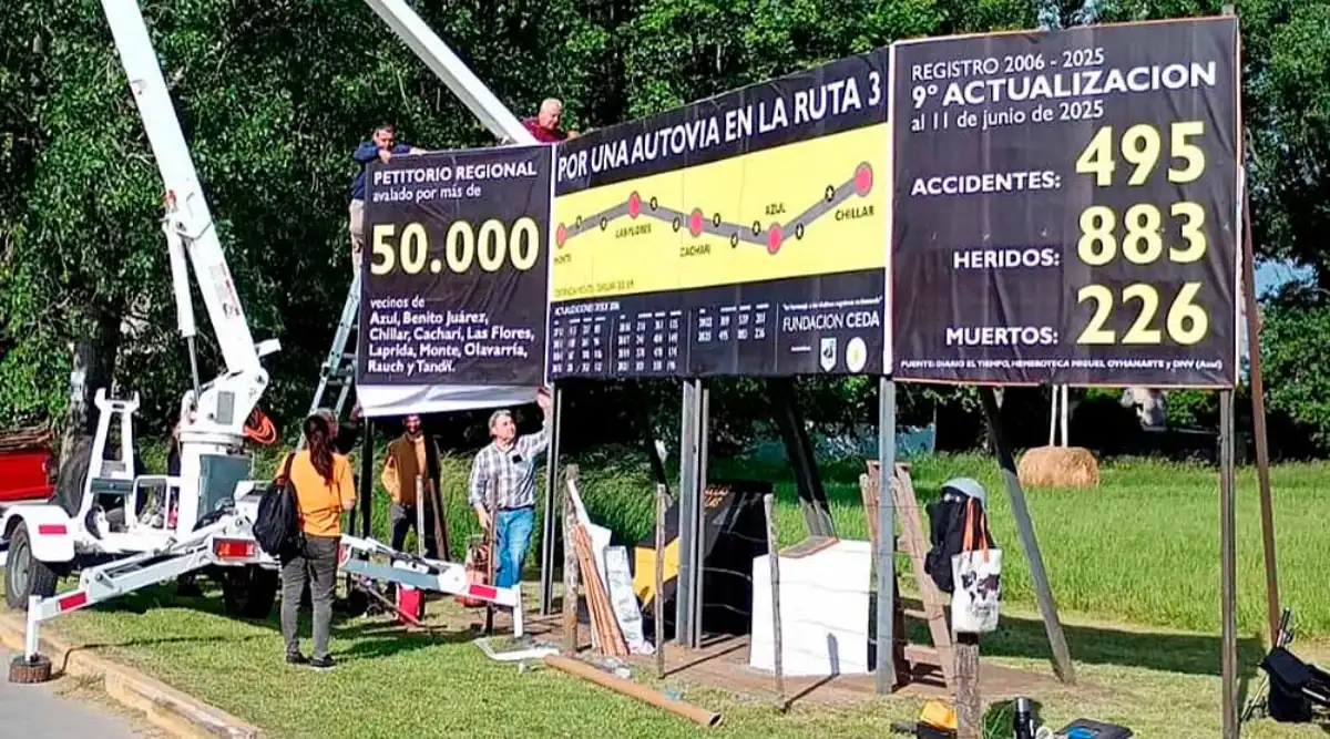 Colocaron en Azul un nuevo cartel con las cifras actualizadas de siniestros en la Ruta 3