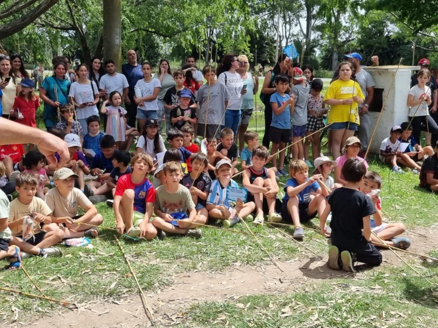 La jornada tuvo un momento especial con la presencia de Mariano Duarte, reciente campeón sudamericano de longcasting, quien compartió su experiencia deportiva, mostró su medalla y el equipo utilizado durante la competencia, generando gran entusiasmo entre los niños.