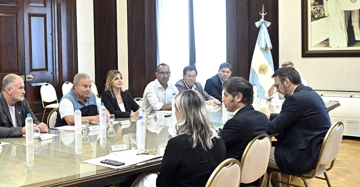 El gobernador Axel Kicillof encabezó este martes una reunión con 13 intendentes bonaerenses que firmaron convenios de leasing para adquirir equipamiento por más de $6.871. El encuentro se realizó en el Salón de los Acuerdos de Casa de Gobierno, con la participación del presidente de Banco Provincia, Juan Cuattromo, y la presidenta de Provincia Leasing, Valeria Dallera.