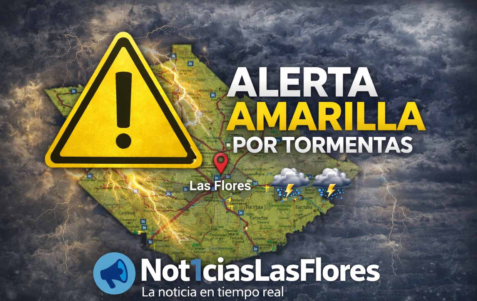El Servicio Meteorológico Nacional (SMN) emitió una triple alerta amarilla por tormentas que afectará a la ciudad de Las Flores y gran parte de la región.
