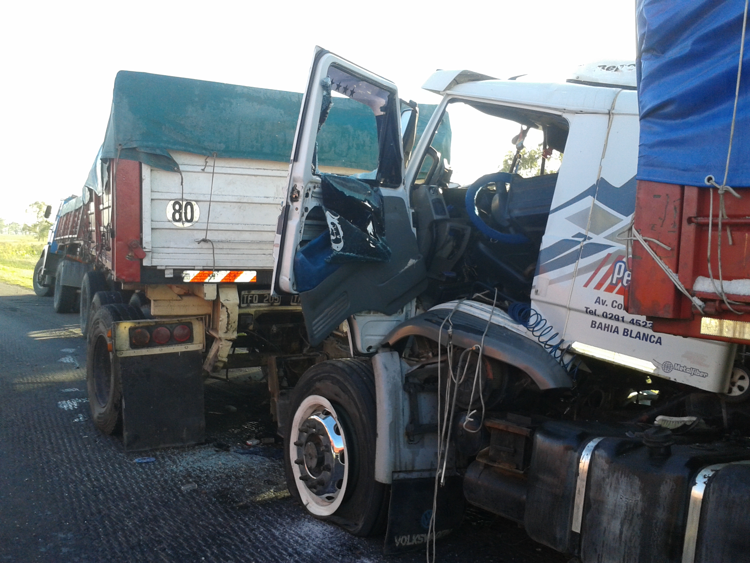 Siendo las 2.30 hs de este jueves 20, se produjo un fuerte choque por alcance en la Ruta Nacional N° 3, en dirección Azul – Las Flores, donde en el km 206 un camión VW 17220 con dominio DKK981 y semi-remolque con dominio KVS697 colisiona fuertemente con otro vehículo de igual porte, un FIAT 619 con dominio SDZ925.
