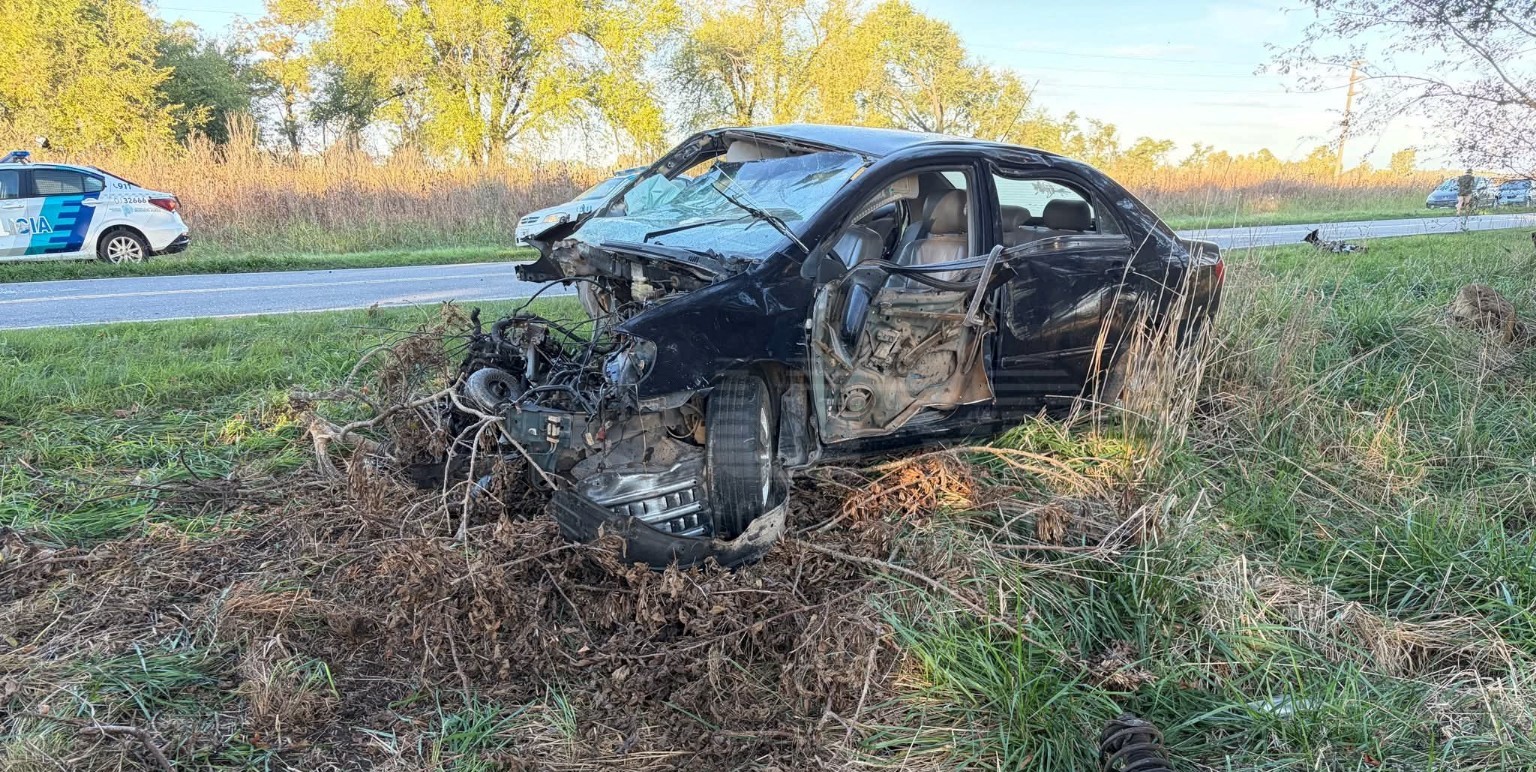 Alrededor de las 8:00, un automóvil Toyota Corolla que circulaba en sentido San Miguel del Monte–Lobos perdió el control, despistó y terminó impactando contra árboles ubicados en la banquina.