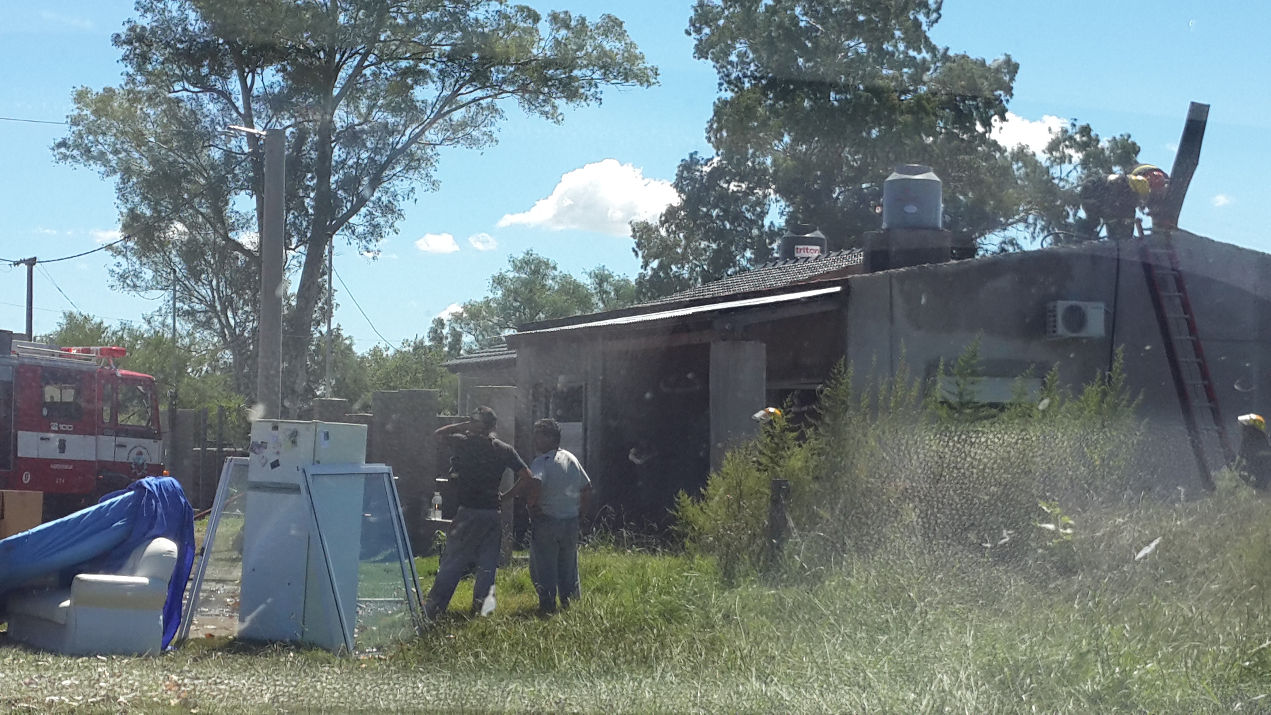 Comenzando la tarde de este sábado, tres dotaciones de Bomberos se dirigieron al llamado por una vivienda que se estaba incendiando, nuestro equipo se dirigió rápidamente al lugar del siniestro donde se pudo ver a varios vecinos que se encontraban ayudando a la familia damnificada.