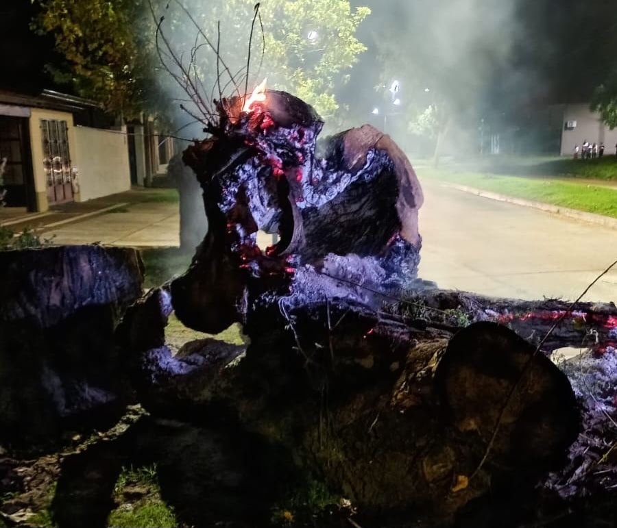 Incendio de un árbol podado movilizó a bomberos y generó un corte momentáneo de tránsito