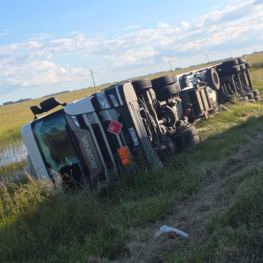 Un camión Scania (patente AE981NC) protagonizó un vuelco este domingo por la tarde en la Ruta Nacional Nº 3, a la altura del kilómetro 232, mientras circulaba desde Bahía Blanca hacia Buenos Aires.