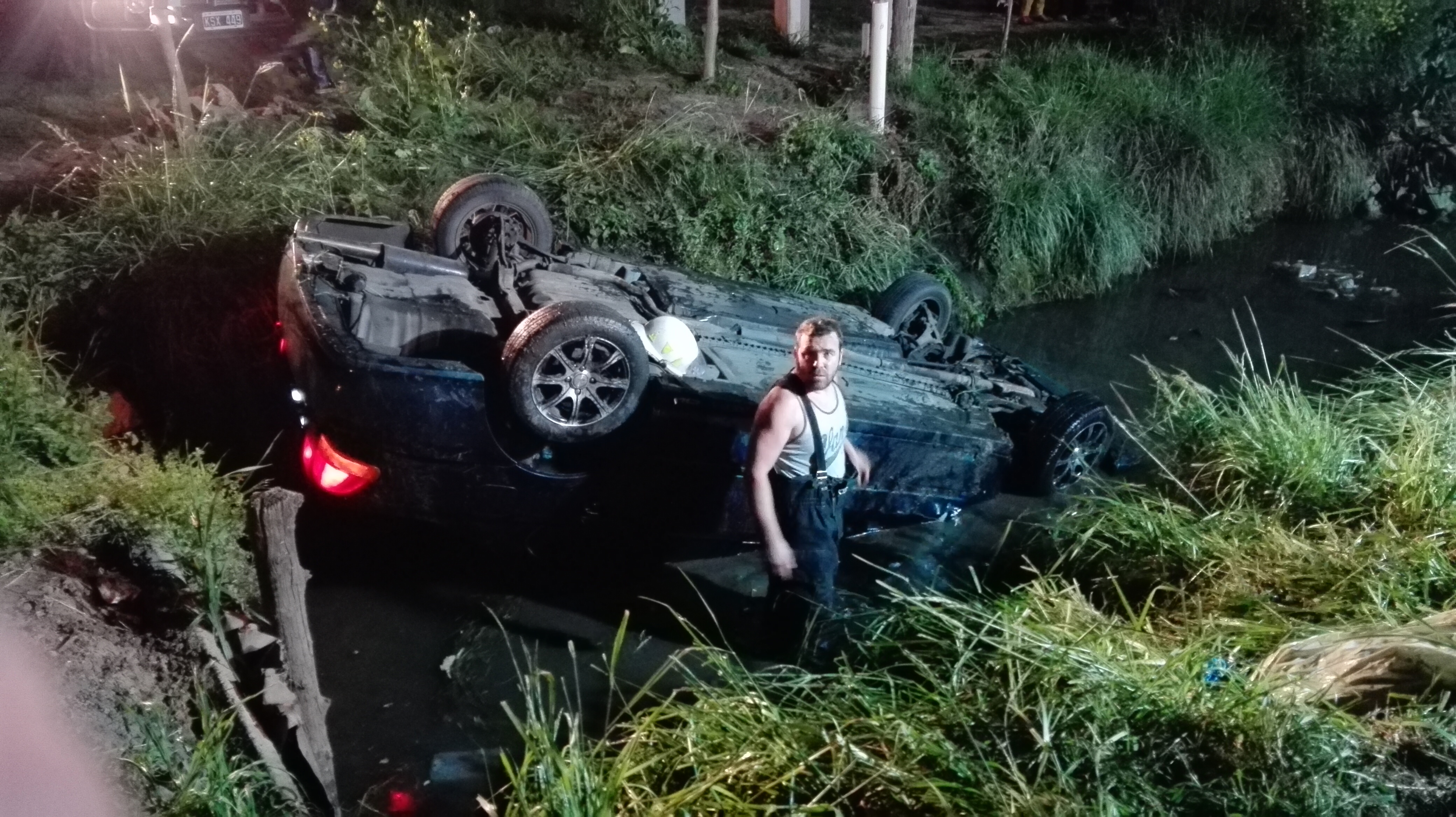 A raíz del fuerte vuelco, dos personas de nacionalidad extranjera quedaron atrapadas, una de ellas fue rescatada por vecinos, mientras que la otra tuvo que ser asistida por el cuerpo de rescate de bomberos. Afortunadamente el zanjón no se encontraba con mucho caudal de agua.