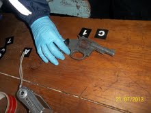 Posteriormente a esto se comenzó con las averiguaciones del caso, logrando obtener orden de allanamiento para una vivienda ubicada en el préstamo sur esquina oeste de la Estación de Trenes de Colman, en la cual vive el ciudadano FACUNDO MARTINEZ, junto a otros familiares, diligencia que se llevo a cabo el día Domingo 21/08/13 a partir de las 16:00 hs. logrando secuestrar la billetera de color blanca propiedad de la víctima conteniendo la totalidad del dinero robado, tres carabinas calibre 22, marcas Venturini, Marcati y Batan, un revolver marca Galán, gran cantidad de municiones para dichas armas y las capuchas utilizadas en el hecho. Asimismo se incauto en el inmueble una gran cantidad de elementos a saber: platos, vasos, cubiertos, ropa de cama, todo sin uso, faroles, recados, una radio, juegos de riendas etc. Elementos estos productos de un “ROBO” perpetrado con fecha 24 de Abril de 2013, en el Establecimiento Rural denominado “EL CHIMPIRU”, partido de Rauch, propiedad del Sr. BOURDETTE.