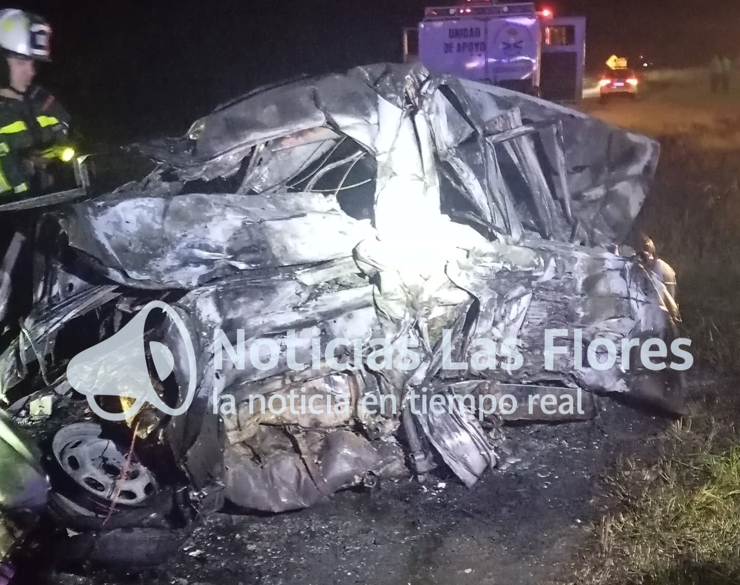 Según informaron las autoridades, la camioneta embistió por alcance al Gacel, provocando que este se cruzara de carril e impactara de manera frontal contra el micro que circulaba en dirección Monte – Las Flores. Producto de la colisión, el Gacel se incendió completamente.