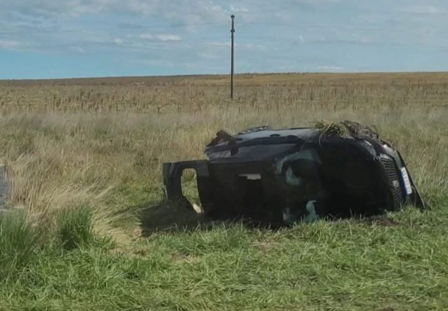 Como consecuencia del incidente, el rodado terminó volcado sobre uno de sus laterales a varios metros de la calzada, en una zona de pastizales, tal como se observa en la imagen.