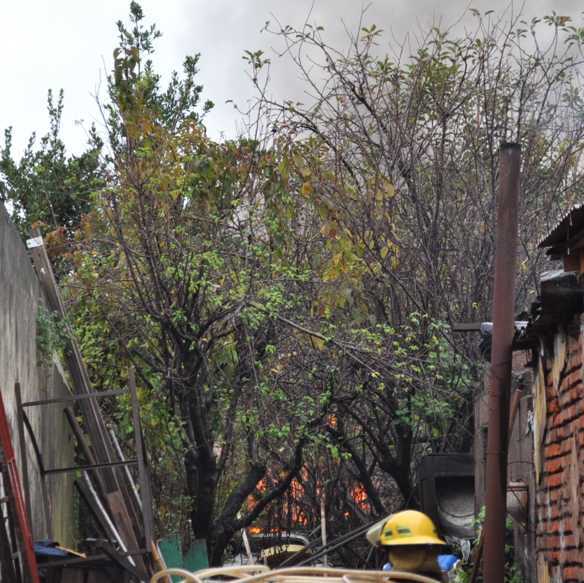 Cuatro dotaciones trabajaron para apagar el impresionante incendio que se había originado por la quema de  un galpón en el patio de un domicilio. Según nos comentaron los vecinos, la quema que había comenzado bajo control se les fue de las manos, el humo intenso cubrió el cielo de Las Flores por varios minutos.